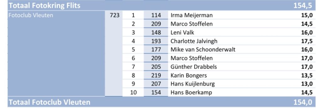 Fotoclub Vleuten behaalde een mooie 5e plaats tijdens de afdelingswedstrijd DBC 2025 van de Fotobond Utrecht-‘t Gooi. Dit jaar streden 18 fotoclubs om deze felbegeerde titel. De juryleden Arij van der Stelt en Teus de Groot hebben hun oordeel woensdag 17 december toegelicht en de punten bekendgemaakt. Felicitaties aan de winnaar van de DBC 2025.